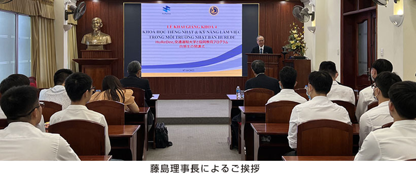 10月7日、ハノイUTCにてHuReDeeクラス第4期(UTC4)開講式が開催され、HuReDeeより藤島理事長、山口常務理事が出席しました。UTC4クラスは土木・建築専攻学生14名、電気工学専攻学生9名の合計23名。