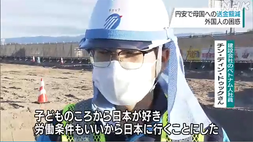本年4月に来日したHuReDee卒業生ドゥック君(ハノイ交通運輸大学卒業)が日本で働く高度外国人材として昨今の円安影響についてNHKのインタビュー(